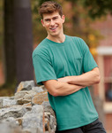preshrunk 100% ring-spun garment-dyed cotton • 6.1-oz. • set-in sleeves • shoulder-to-shoulder taping • ribbed collar • double-needle stitched neck, armholes, sleeves and bottom hem • left chest pocket • Sizes: S-3XL