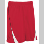 100% polyester wicking knit * Wicks moisture away from the body * Pad print label * Covered elastic waistband with inside drawcord * Contrast-color side and bottom back inserts * 8-inch inseam * Youth inseam graded * Double- needle hemmed bottom
