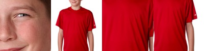 94% polyester/6% spandex • 4.1-oz. • moisture-management/antimicrobial performance fabric • double-needle hem with tack • paneled shoulder for maximum movement • left-sleeve heat-transfer logo • Sizes: S-4XL