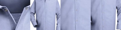 - Three woodtone buttons on a clean-finished placket with a reinforced box