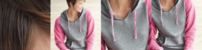 - Contrast color raglan sleeves and drawcord