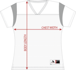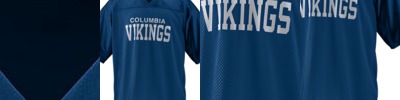 100% polyester tricot mesh * 100% polyester dazzle fabric yoke and sleeves * 1x1 rib-knit modified V-neck collar * Front and back yoke * Back yoke large enough for embellishment * Set-in sleeves * Outside locker label is on wearer's left side near bottom hem * Double-needle hemmed sleeves and bottom * Not meant to be worn with pads