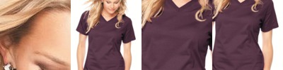The tee takes a turn toward feminine with a flattering fit and V-neckline.