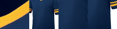 4.8 ounce 50% polyester/50% cotton jersey knit * Contrast color V-neck collar * Set-in sleeves with contrast color sleeve stripes