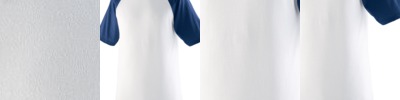 50% polyester/50% cotton jersey knit * Contrast color 1x1 rib-knit collar * Contrast color raglan sleeves * Double-needle hemmed sleeves * Serged fishtail bottom
