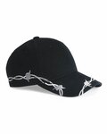 Hip barbed wire pattern cap heads out with a pre-curved visor and black undervisor.