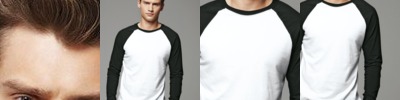 - Contrast color set-in collar and three-quarter length raglan sleeves