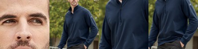 A long-sleeve option in moisture-wicking polyester.
