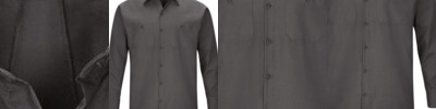 - Three-button box placket with dyed-to-match buttons