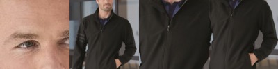 - Self-mock collar, cuffs, and bottom hem