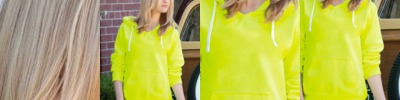 - Raw-edge hood opening, pocket seams, cuffs, waistband, zipper placket and side seams