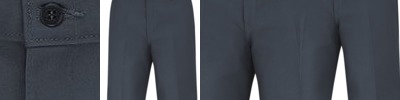 - Snap front closure, hook-and-loop fly with adjustable sides and elastic back