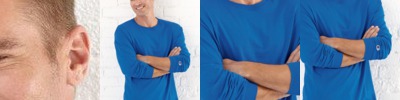 - Two pearlized buttons on adjustable cuff with button-through sleeve placket