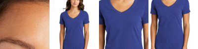 100% polyester wicking knit with color secure(r) technology that helps prevent dye migration * Wicks moisture * Ladies' fit * Tear away label * V-neck collar * Fully reversible * Each layer hemmed separately for embellishment