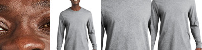 - Black Heather CVC: 4.2-ounce, 90/10 Airlume combed and ring spun cotton/poly, 32 singles