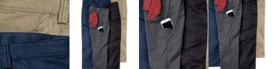 - Cell phone pocket with hidden snap on right leg