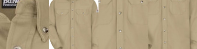 - Two chest pockets with button flap closures and sewn-in pencil stall