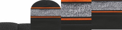 - Tubular rib knit construction with darts at crown for shaping