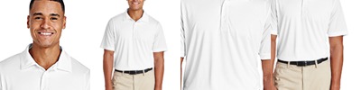3.8 oz./yd2 / 130 gsm, 100% polyester interlock with moisture-wicking and uv protection performance; Dyed-to-match buttons; Team fit; Tear away main label; Three-button placket; Cationic dyes for superior brightness and excellent colorfastness;