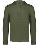 * 6.78-ounce, 100% polyester melange fleece * Woven label * Scuba shaped 3-piece hood * Raglan sleeves * Front pouch pocket with inner mesh cell phone or valuables pocket * Self-fabric cuffs * Open bottom