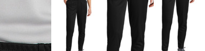 * Lightweight, soft-knit * Solids, 89% recycled polyester/11% spandex * Heathers, 45% recycled polyester/44% polyester/11% spandex * Wicks moisture * Tagless label * Covered elastic waistband * Faux fly * Front pockets with inner valuables pocket inside left pocket * Back pocket with zipper * Tapered leg