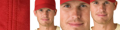 - 95/5 polyester/ spandex® heather woven suit fabric front panels and visor