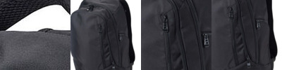 - Padded sleeve in main compartment holds 13" laptop