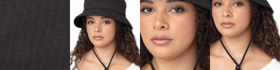 - Self-fabric strap with antique brass metal buckle and tuck-in grommet