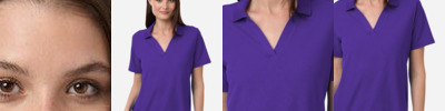 5 oz/yd², 60/40 cotton/recycled polyester pique Moisture-wicking performance UPF 40+ protection Active fit V-neck placket with matching knit collar Side vents Tear away label