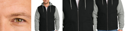 - 8.8-ounce, 70/30 cotton/polyester fleece hood and sleeves