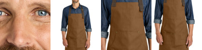 An ideal choice for builders and artisans, this apron is constructed from heavyweight cotton duck material and features multiple pockets for tools. 12-ounce, 100% cotton duck Adjustable web neck strap with antique brass slider Locker loop at back of neck Dark Brown contrast web waist ties and utility loop Kangaroo pockets with multiple pockets Antique brass rivets Heavy-duty double-needle topstitching throughout 13'w across chest x 34'l