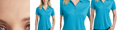 Tailored for a feminine fit, this style truly performs with Dri-FIT moisture management technology. Design features include a flat knit collar, four-button placket and open hem sleeves. Pearlized buttons are selected to complement the shirt color. The contrast Swoosh design trademark is embroidered on the left sleeve. Made of 5.3-ounce, 100% polyester Dri-FIT fabric.