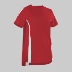100% polyester wicking knit with printed sleeves and collar * Wicks moisture away from the body * Pad print label * Self-fabric collar * Raglan sleeves with self-fabric cuffs * Double-needle hemmed bottom