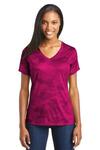 KLST370 Sport Tek LST370 Ladies CamoHex V Neck Tee